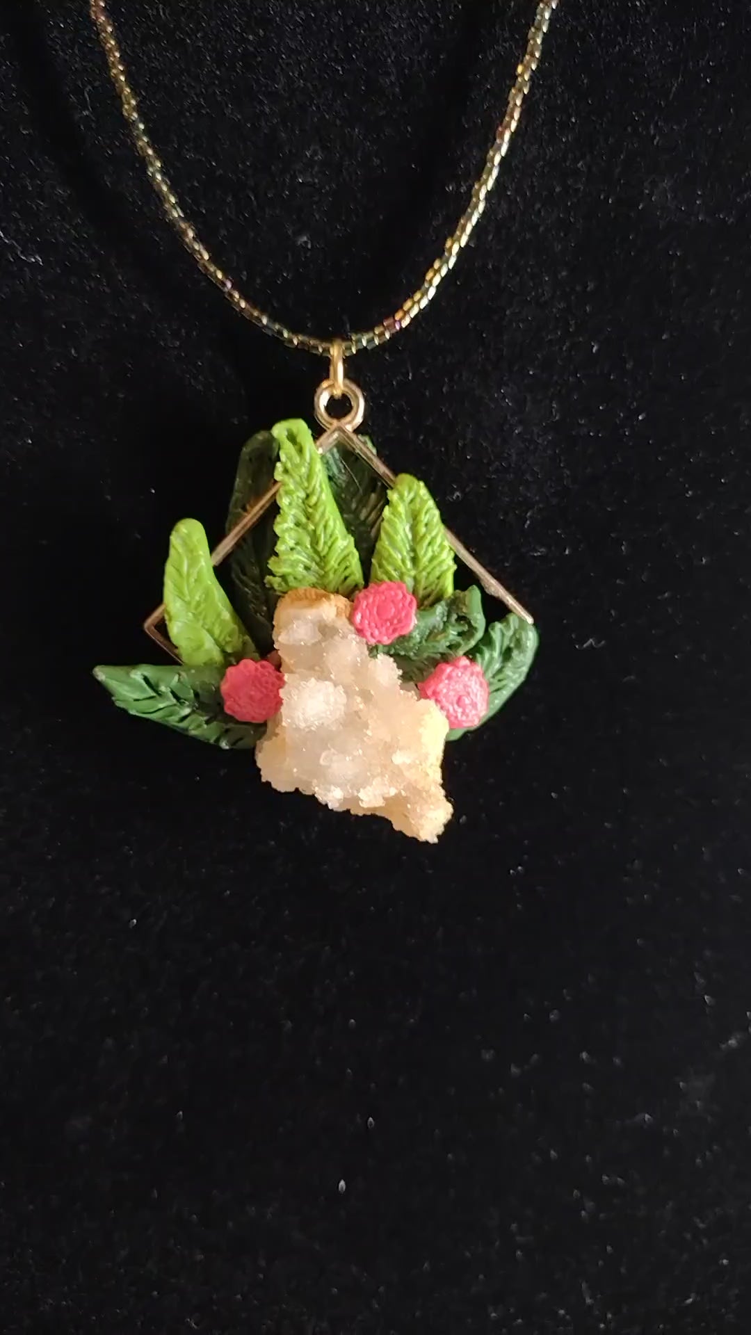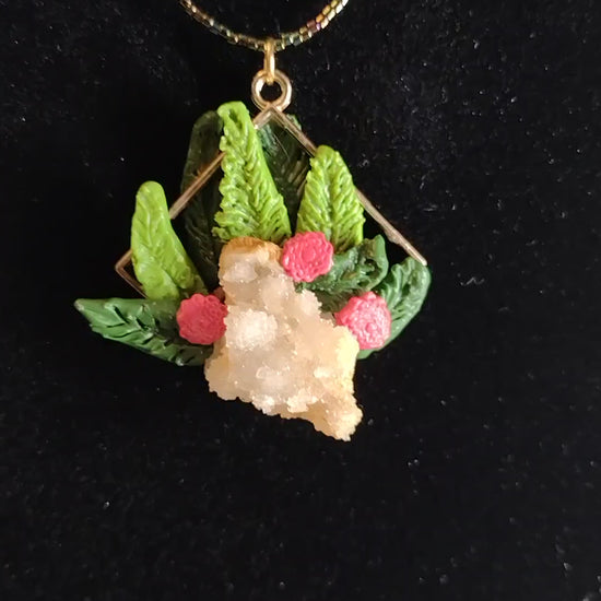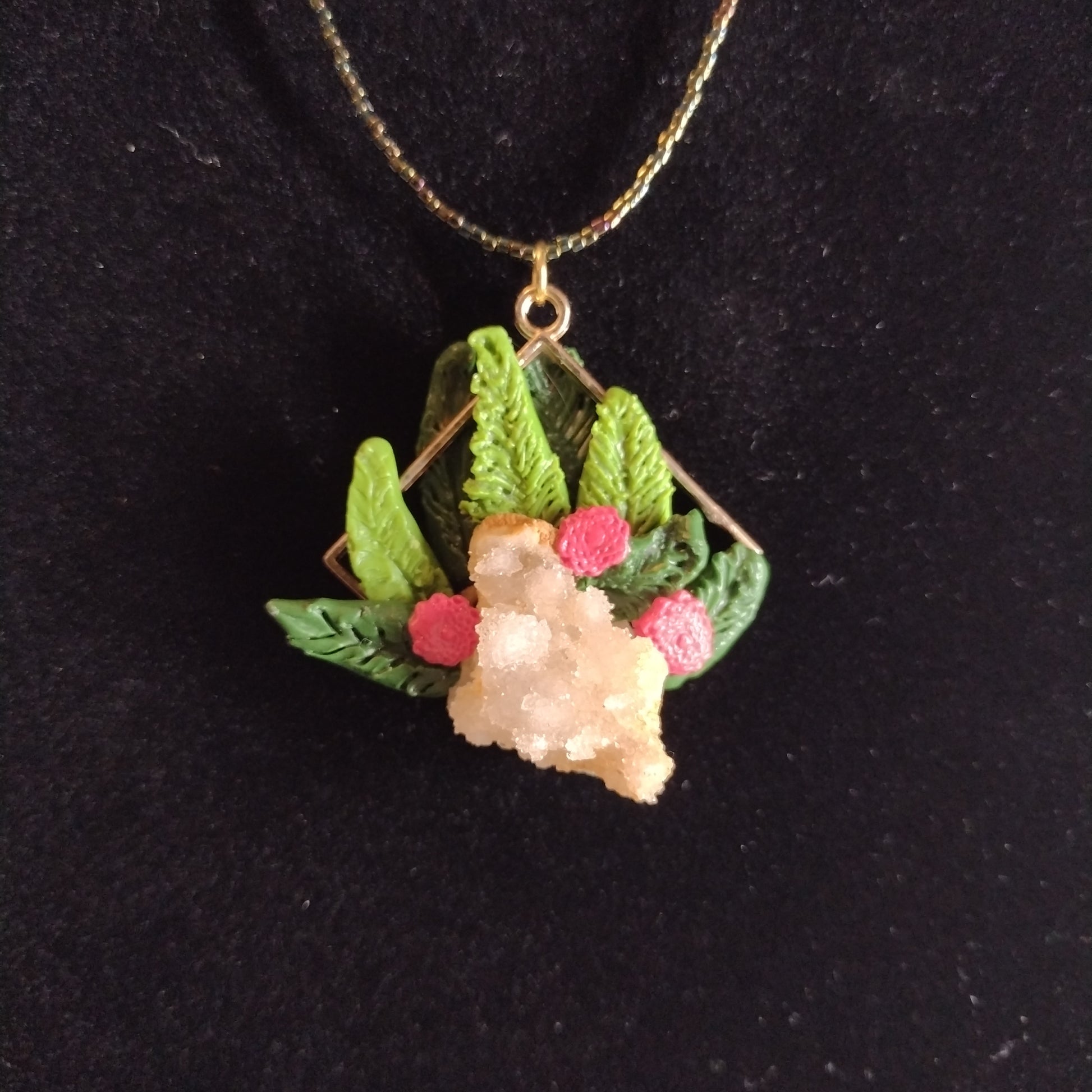 Geode pendant with gren seed bead neclacke. Stud earrings to match
