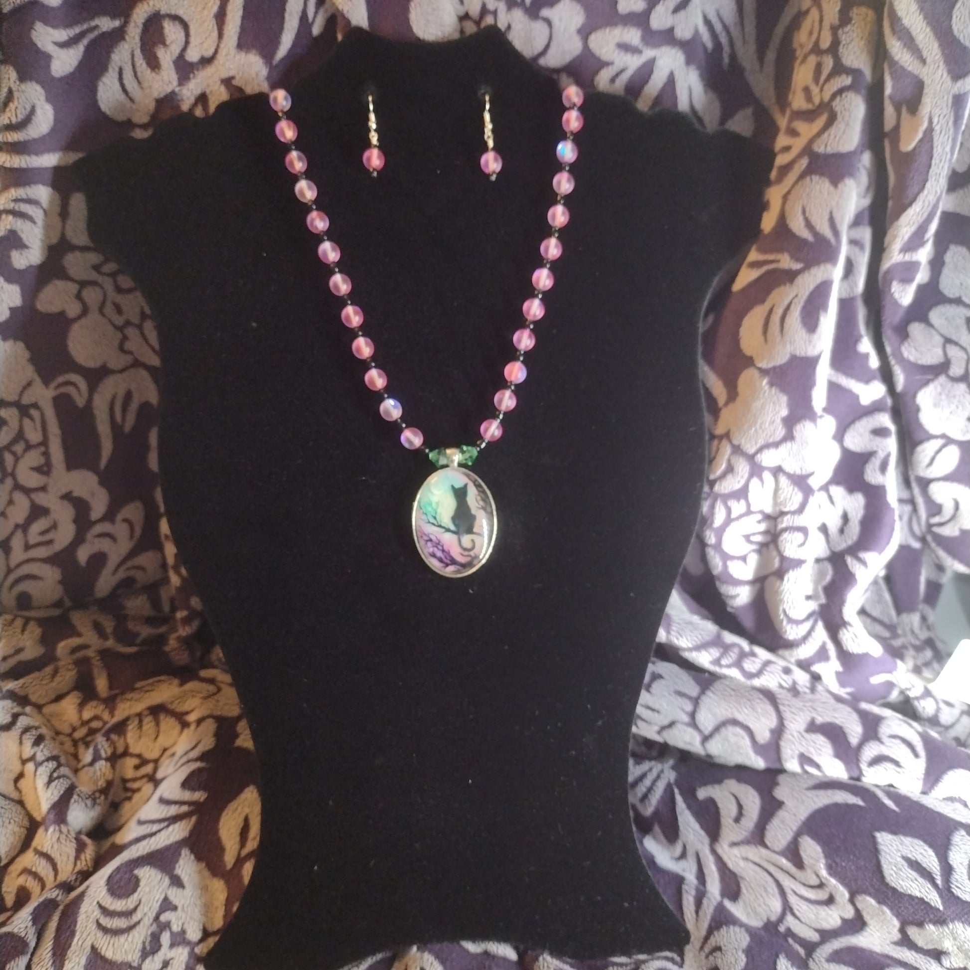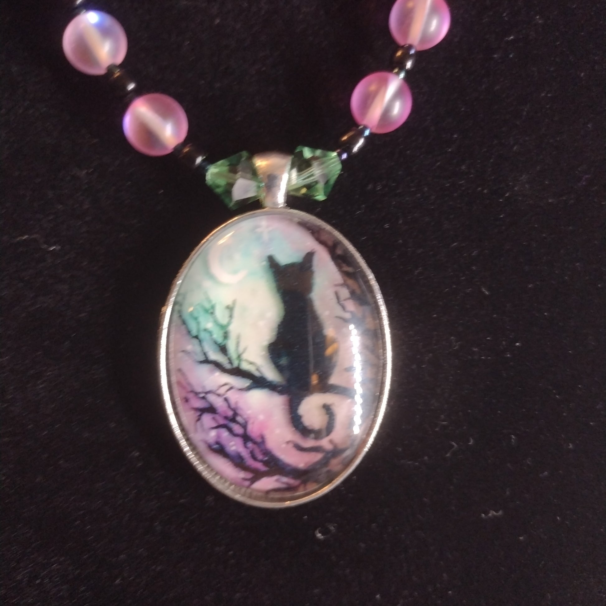 Glass pendant with black cat. Glass beads